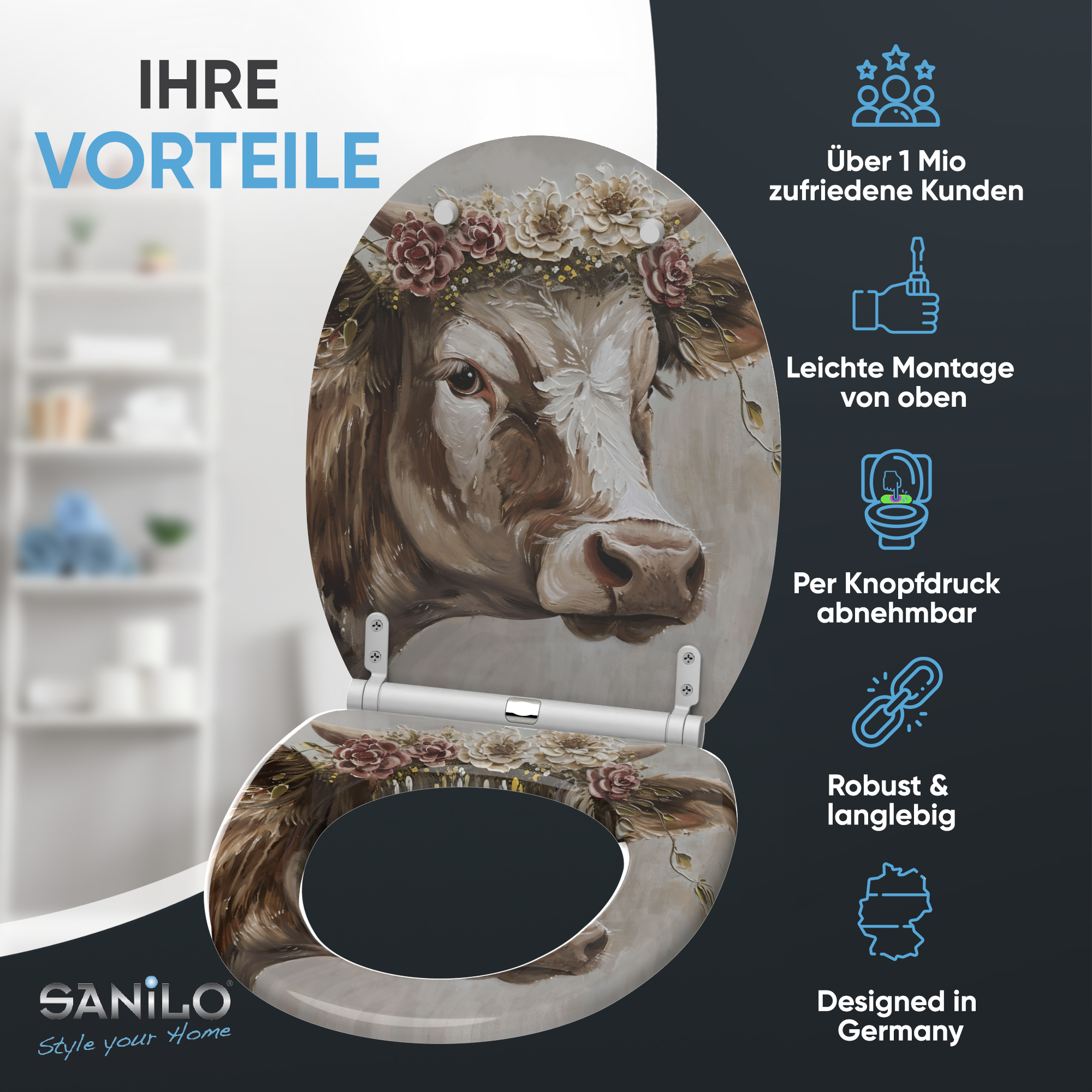 • 6 stabile Abstandshalter unter dem WC-Sitz