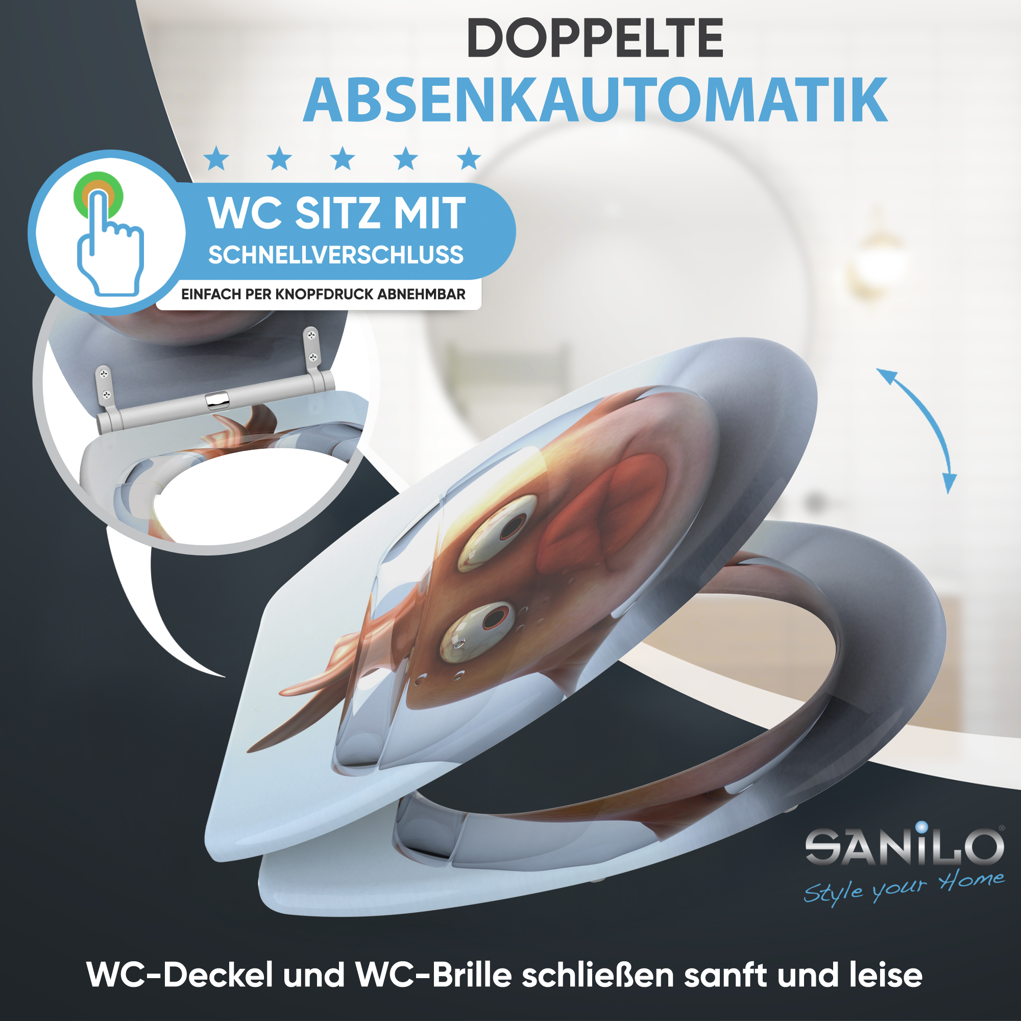 WC-Sitz mit Absenkautomatik und Schnellverschluss Goldfisch - Premium Toilettendeckel direkt vom Hersteller