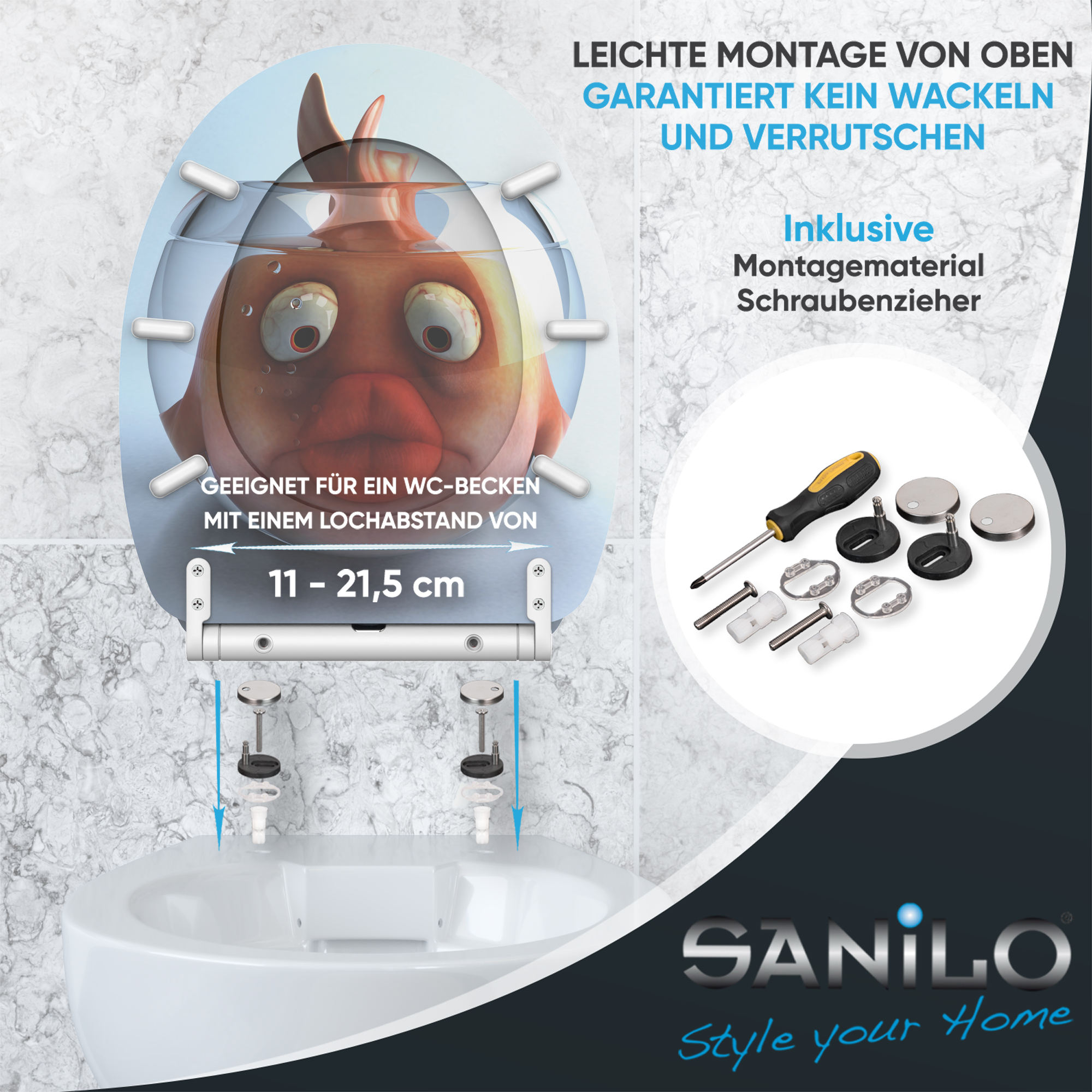 • 6 stabile Abstandshalter unter dem WC-Sitz