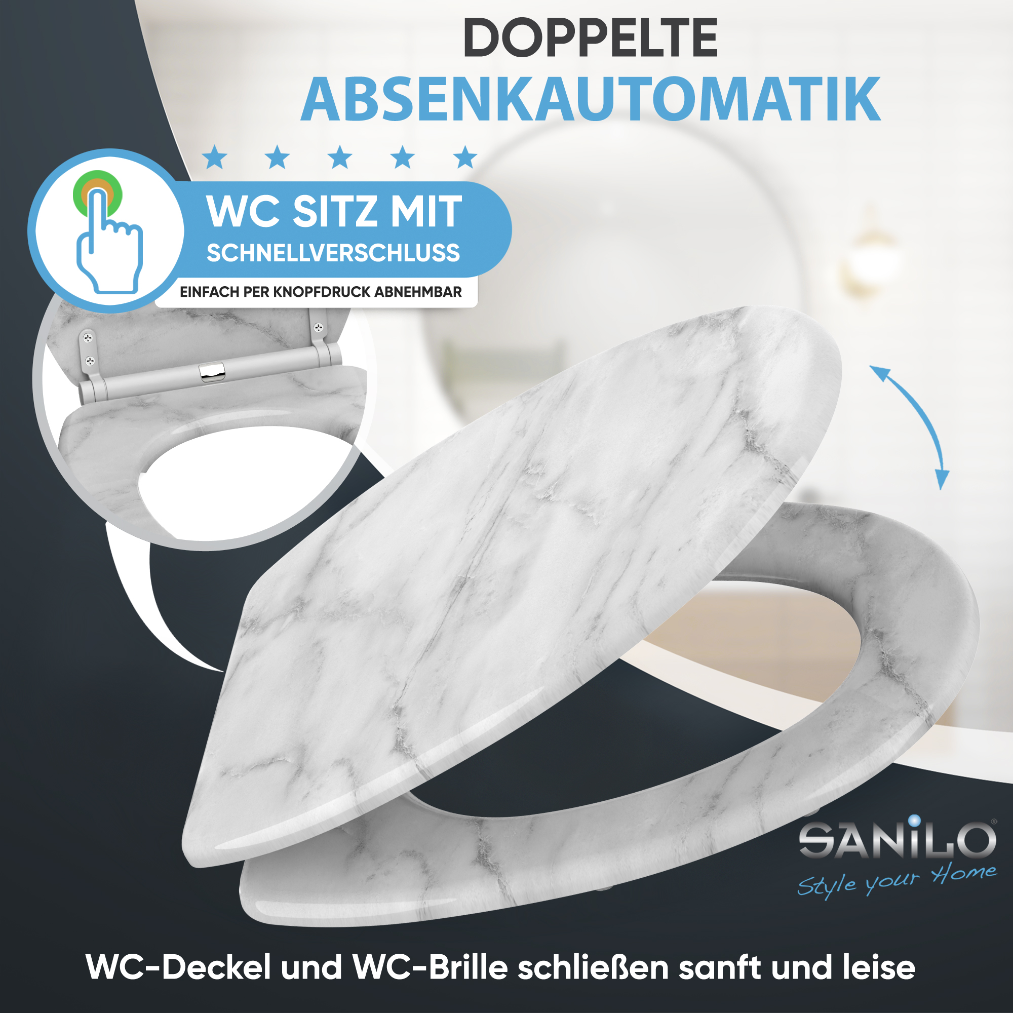 WC-Sitz mit Absenkautomatik und Schnellverschluss Marmor - Premium Toilettendeckel direkt vom Hersteller