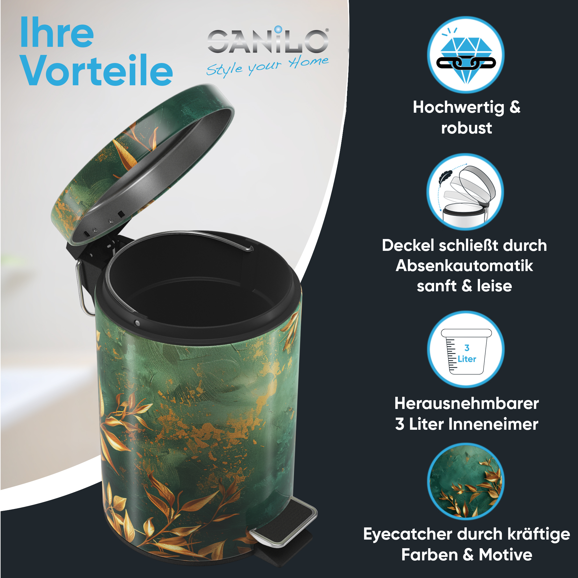 • EINZIGARTIGE DESIGNS: Die Sanilo Kosmetikeimer sind der Blickfang in jedem Badezimmer. Wählen Sie aus vielen Motiven Ihr Lieblingsdesign und bereichern Ihr Badezimmer mit einem echten Highlight.