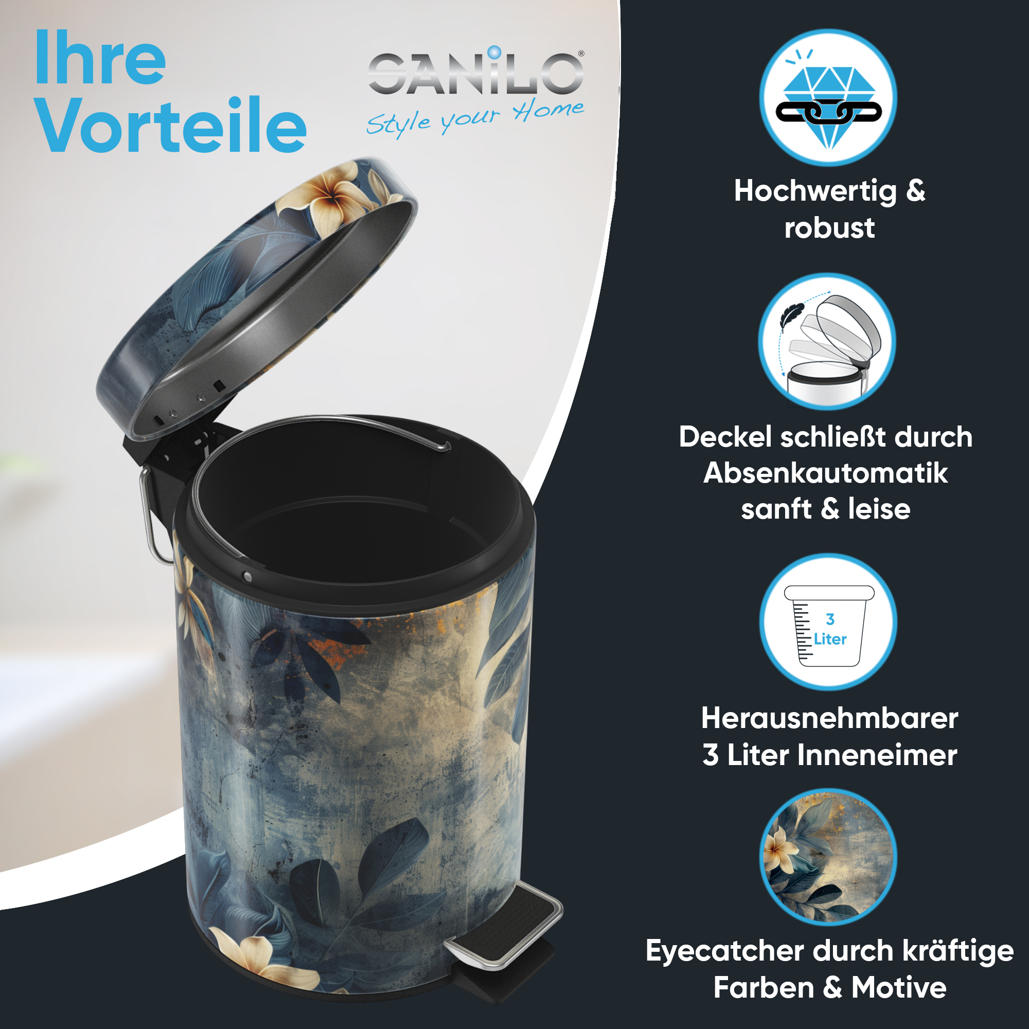 • EINZIGARTIGE DESIGNS: Die Sanilo Kosmetikeimer sind der Blickfang in jedem Badezimmer. Wählen Sie aus vielen Motiven Ihr Lieblingsdesign und bereichern Ihr Badezimmer mit einem echten Highlight.